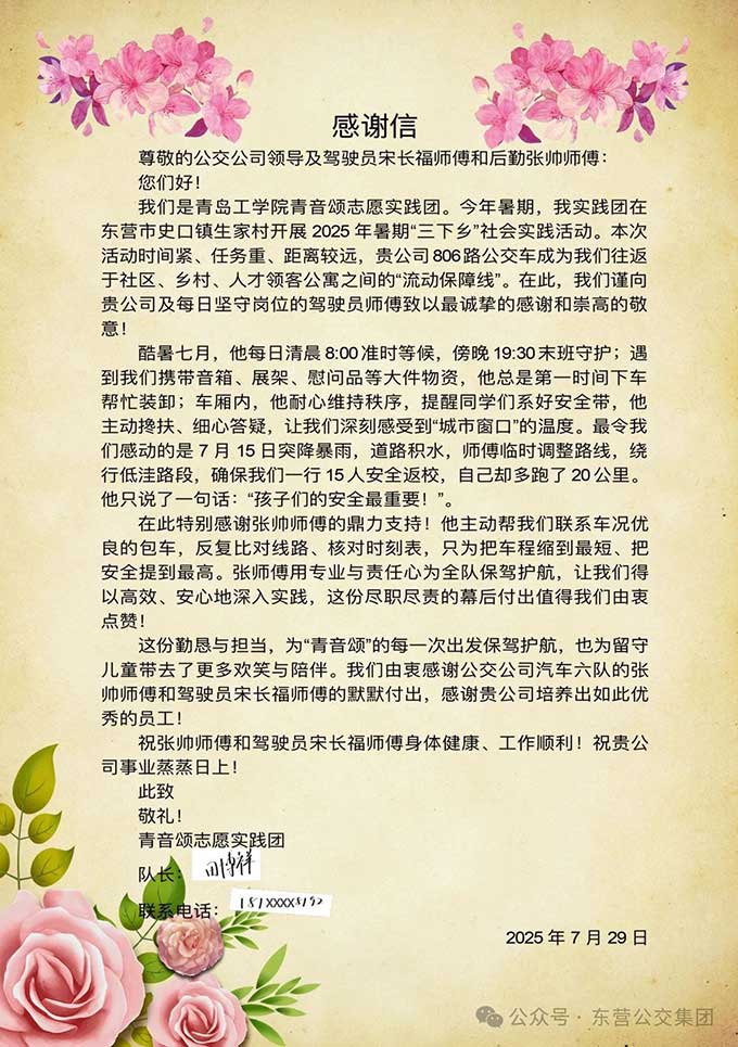 圓夢(mèng)高考|“你們?nèi)σ愿?,我們?nèi)套o(hù)航!”為保障高考期間交通順暢有序,東營市公交集團(tuán)以高度的責(zé)任感提前布局、周密安排,傾力打造安全、高效的送考保障體系,誓為全市考生鋪就一條平安赴考的坦途。市公交集團(tuán)選拔駕駛經(jīng)驗(yàn)豐富且服務(wù)意識(shí)突出的優(yōu)秀駕駛員...[查看更多>>]更多>>> 最新公告